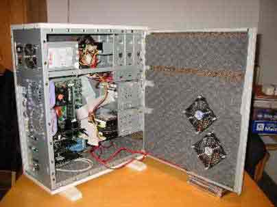 Gehäuse: CS-601 Komplett mit Spiezial-Kork und Akustik-Schaumstoff gedämmt Eigenbaulüftersteuerung (12V-Blau, 9V-Grün, 5V-Rot, Off) Enermax 350 Watt 2x YS-Tech 80mm 2x YS-Tech 92mm Hardware: | |