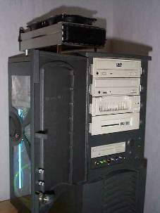 Celli 800@1066MHz @ Golden Orb Elitegroup BAP A+ 256 MB RAM, Infineon (CAS 2) Viper 330 & Voodoo 2 ;) Hauppauge TV Radio Soundsystem Base 64 Rod Hot 100 RAID + 2xIBM 307030 (=60GB) ;) Teac 24x / Mitsumi 4x/8x 11 Lüfter: Golden Orb, 1x120mm, 1x92mm, 3x80mm, 2x60mm, 3x40mm Lackierung (sieht langsam mitgenommen aus), Chromgitter, Car-Hifi-Neon, LED-Lauflicht in 5,25"-Blende, Superhelle LED's, Lüftersteuerung (6,4-10,75 Volt), beleuchtetes Label (Holosticker eines PII's), Spiralschläuche ohne Ende, Kabelbinder blabla ;) Tastatur-Mod: alles orange'ne LED's + zusätzliche "Beleuchtung" Maus-Mod: zusätzliche LED's |