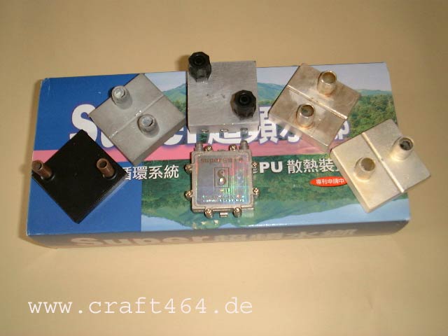 Da heutig Prozessoren immer mehr Verlustleistung habe( 70 Watt sind keine Seltenheit) kommen immer neue Kühler auf den Markt die leider auch immer teurer werden. Aber nicht nur das , leider werden die Kühler auch immer lauter weil immer stärkere Lüfter verbaut werden. Eine Alternative dazu ist eine Wasserkühlung, diese ist nicht viel teurer als ein Hight End Kühler und in Verbindung mit einem Radiator (geschlossenes System) sogar für Lan-Partys einsetzbar . | ||