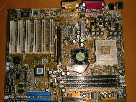 Das Board verfügt über 2x UDMA100 (Via VT686B), 2x UDMA100 Raid 0, 1 oder 0+1 (HPT 370). Damit kann man sich über mangelnde Anschlussmöglichkeiten nicht beklagen. Weiterhin bietet das Board eine Art Fehlercodesanzeige . Hier auf dem Bild unten links zu sehen. Diese LED´s sollen den Besitzern des Boards beim der Fehlersuche nicht allein lassen. Bei einem Fehler zB im Bootvorgang gibt die LED Anzeige einen Wert aus. Die Bedeutung des Wertes kann man dann im Handbuch nachschlagen um zu sehen um welchen Fehler es sich handelt. Dieses ist wie ich finde eine gute Unterstützung bei der Fehlersuche. | |