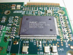 1.Welchen L2 Chache habe ich., das kann man an dem Cachebaustein den Hersteller (wichtig für's umöten!) und die Zugriffszeit ablesen. Im unteren Bild ist ein NEC (6er Tabelle) mit 3.6ns Zugriffszeit abgebildet. Hersteller steht oben. Ein M für Motorola und NEC für ....ja halt NEC! Die Zugriffszeit ist in der 2. Reihe abgebildet. Bekannte Werte sind 4ns, 3.6ns, 3.3ns, 3.1ns, 3 und 2.9 |